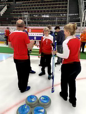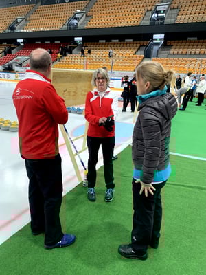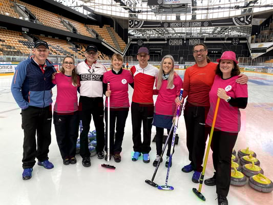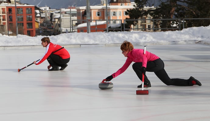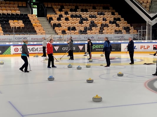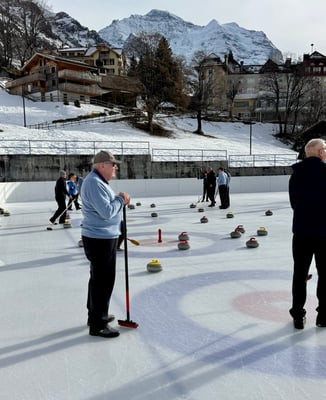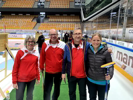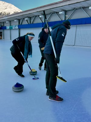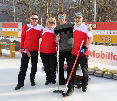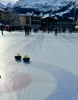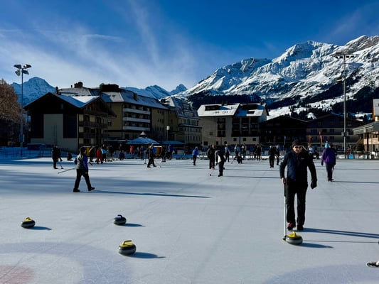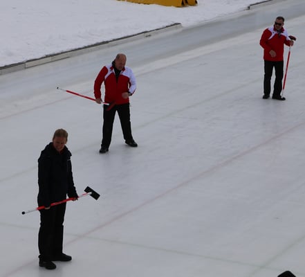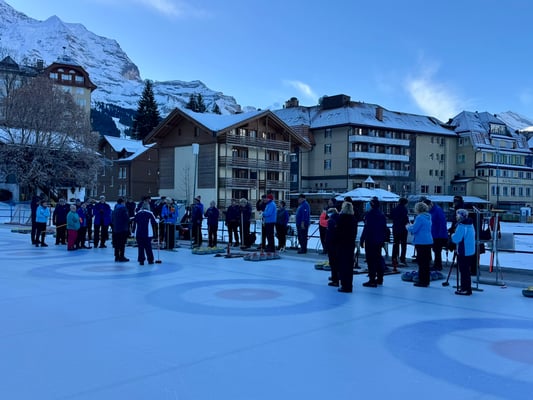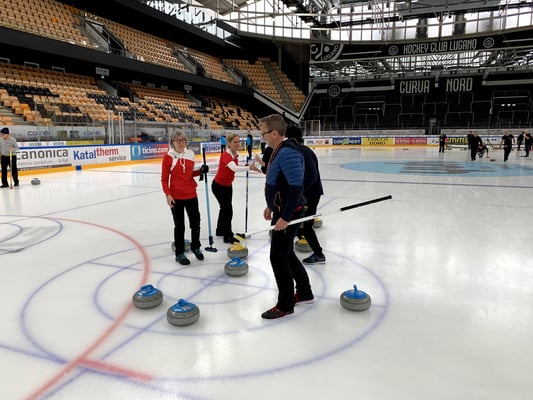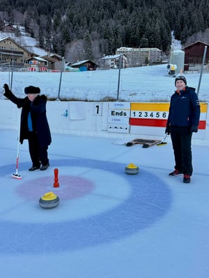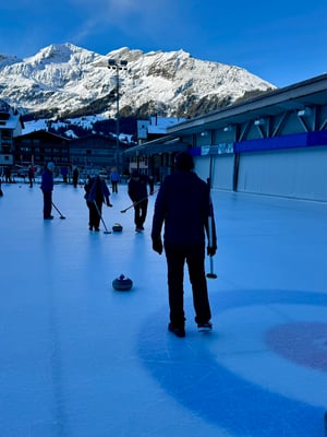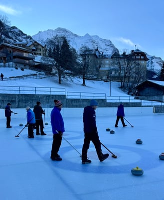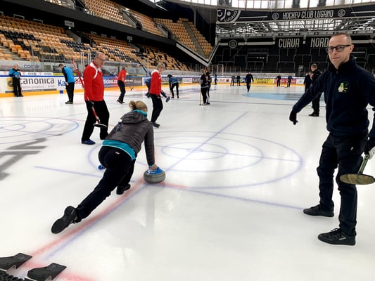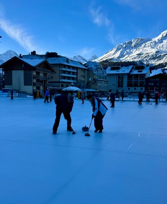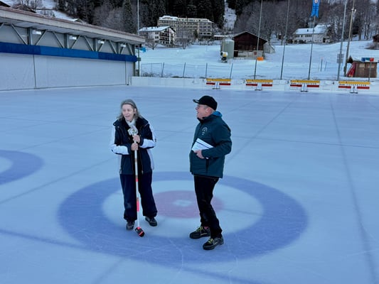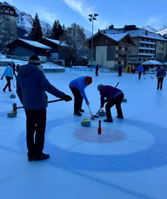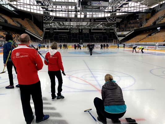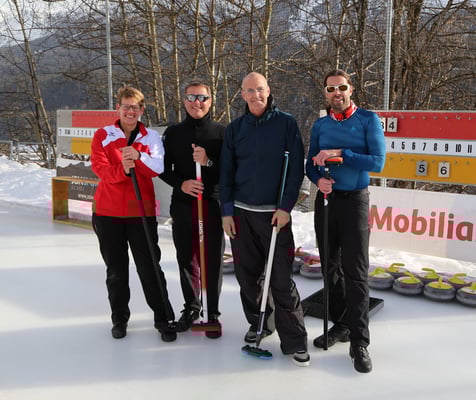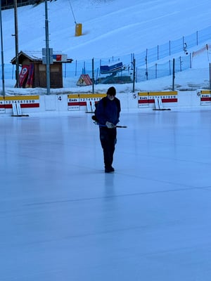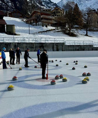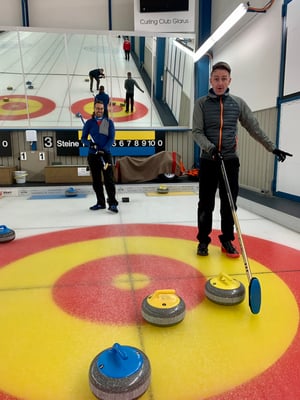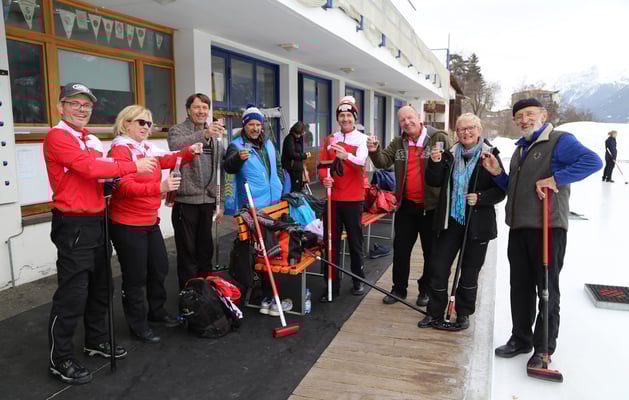 Am Samstag hiess es dann „Allegra Scuol“. In der Sportanlage Trü mit Natur- und Kunsteisbahn wurden wir von einigen Mitgliedern des CC Scuol herzlich begrüsst und in die Besonderheiten des Open-Airs Curling eingeführt. Was bedeutet Kontereis? Warum kommen plötzlich weisse Decken zum Einsatz? Wie schnell muss der Stein abgespielt werden? Wann muss oder darf man den Stein wischen, auch wenn er zu kurz erscheint? Alle diese Fragen wurden von den Curlerinnen und Curlern aus Scuol kompetent beantwortet und vordemonstriert.
