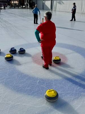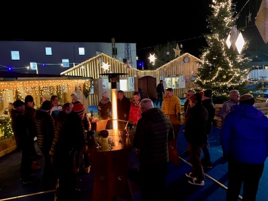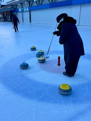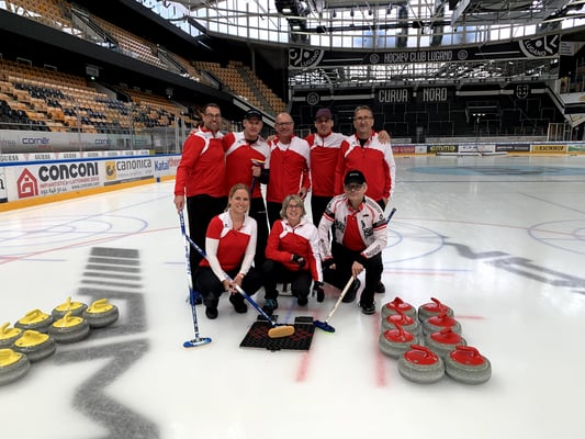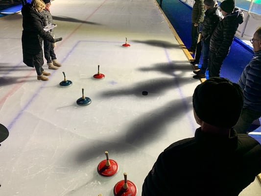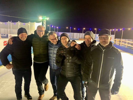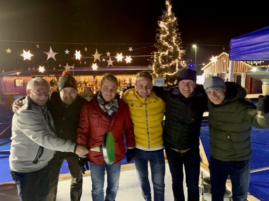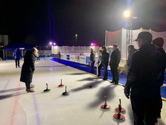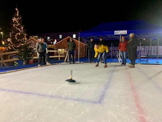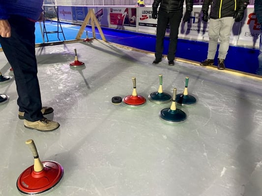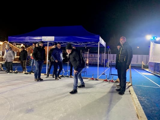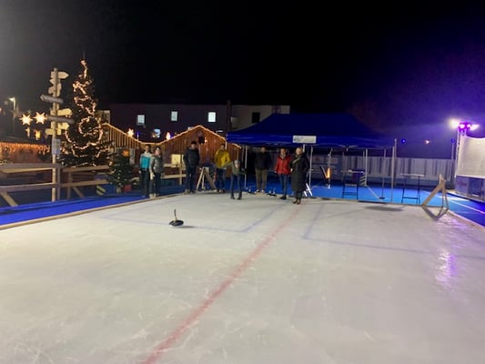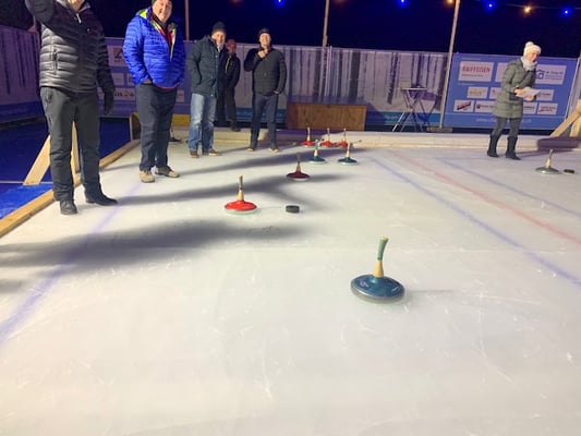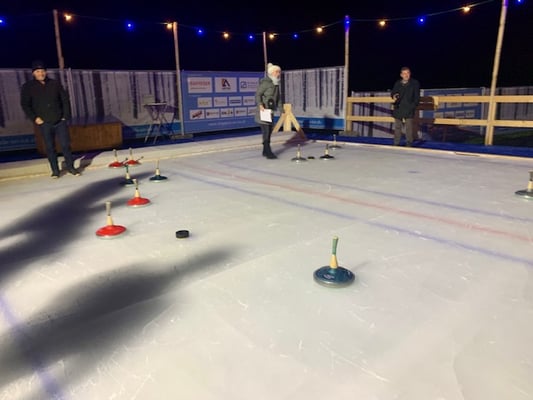 Bei eisigkaltem aber trockenem Wetter trafen sich zahlreiche Club-Mitglieder*innen am "Chappele on Ice" einem Event, wo wir bei zauberhafter winterlicher Stimmung unseren diesjährigen Chlausabend verbrachten. Um 18h trafen wir uns zum gemeinsamen Apéro mit Glühwein und feinen Häppchen, wo auch gleich die neuen Teams für die Frühlingsrunde ausgelost wurden. Anschliessend wechselten wir ins warme Stübli, wo uns ein feiner Znacht mit Salat und Hörnli mit Ghackets serviert wurde. Gestärkt von dieser grossen Portion ging es zum eigentlichen Highlight dem Eisstockschiessen wieder nach draussen in die kalte Nacht aufs Eisfeld. Vier frei zusammengestellte Teams versuchten, bei den folgenden Spielen ihr bestes Eisstockschiessen auszupacken. Mit viel Ehrgeiz und Wille versuchten Mann&Frau den Eisstock mit Präzision, wie beim Curling, über das Eis gleiten zu lassen um möglichst nahe am Ziel der schwarzen Scheibe stehen zu bleiben. Schnell wurden die Unterschiede zum Curling jedoch sichtbar und man musste feststellen, dass sich diese zwei Eisspielarten doch sehr unterscheiden. Nach einer Stunde spielen mit viel Spass und guter Laune sowie auch einigen sehr ansehnlichen "Schüssen" liessen wir den sehr gelungen Abend mit einem feinen wärmenden Zwetschge Lutz ausklingen. Besten Dank für die Organisation. Schön wars...