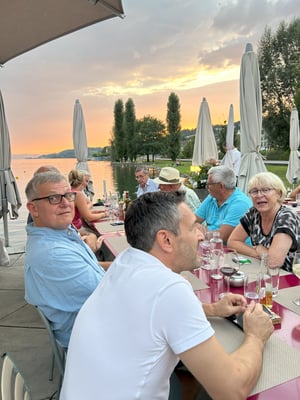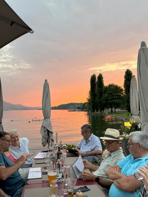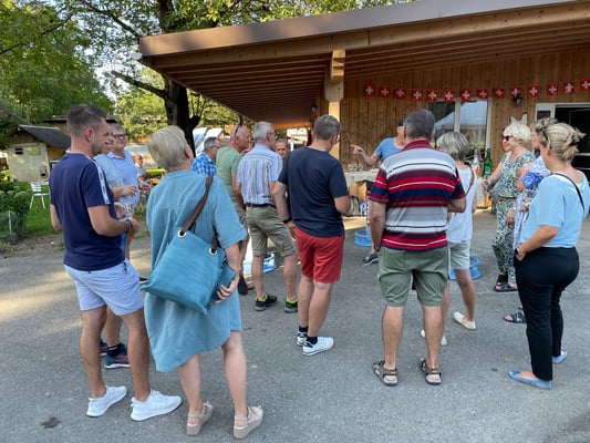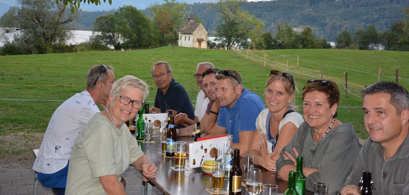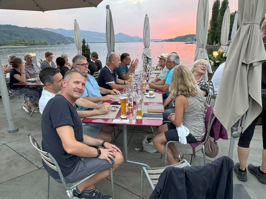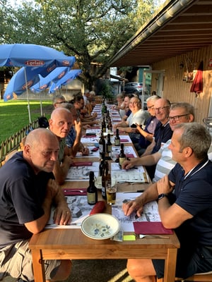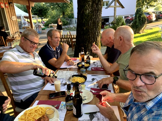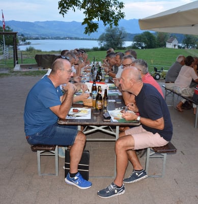Bei angenehmen Wetter trafen sich die Club-Mitglieder auf der Alp Rittmarren; die meisten Kolleginnen und Kollegen haben die Alpwirtschaft zu Fuss erreicht und konnten die schöne Aussicht auf den Zürichsee geniessen. Wer wohl mit wem in welchem Team spielen wird? Der Spielleiter Peter macht es spannend und verrät noch keine Details...