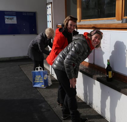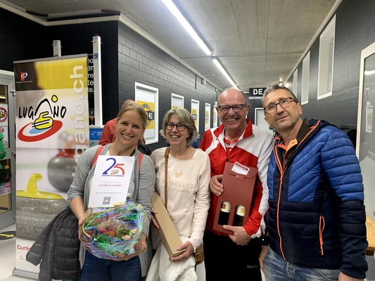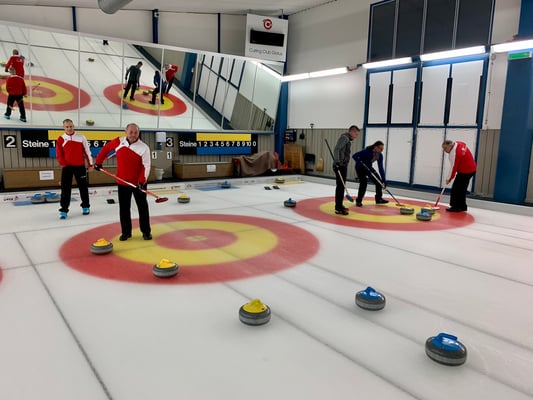 Wir spielten drei Spiele à sechs End mit acht Teams auf vier Rinks. Neben den Rinks haben uns clubeigene Fans mit Zielwasser oder Kurvenöl angespornt und das eine oder andere wurde auf Fotos festgehalten… Das Team Schuster / Andri hat mit 6 Punkten, 11 Ends, 25 Steinen gewonnen, dicht gefolgt vom Team Tschan / Dario mit 4 Punkten, 13 Ends und 21 Steinen.